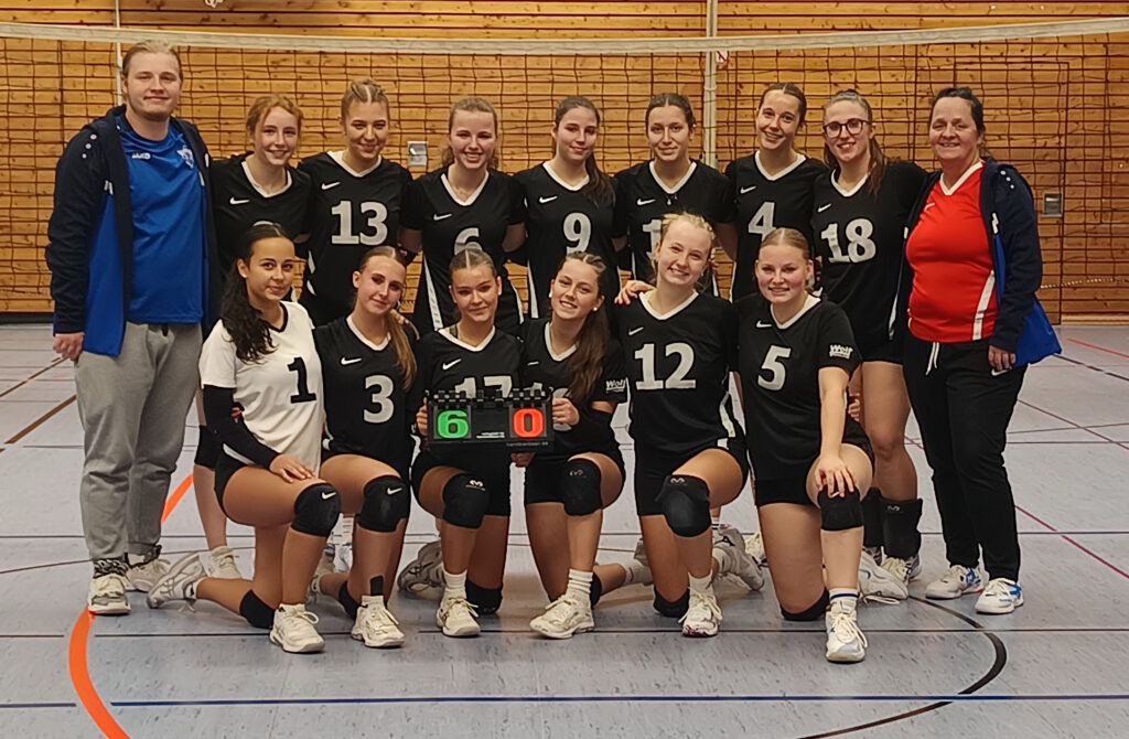 hintere Reihe von links: Trainer Noah Grübl, Elisa Vescera, Lina Schmidt, Ida Kreisbeck, Rebekka Holzner, Ramona Wolf, Marie Deibler, Michelle Miller, Trainerin Birgit Grübl